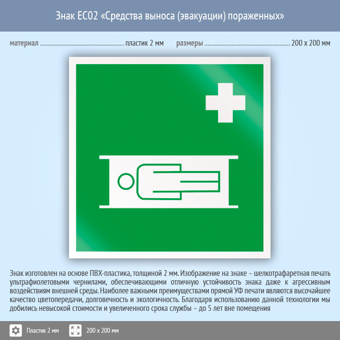 Знак EC02 «Средства выноса (эвакуации) пораженных» (пластик, 200х200 мм) в Хотьково купить