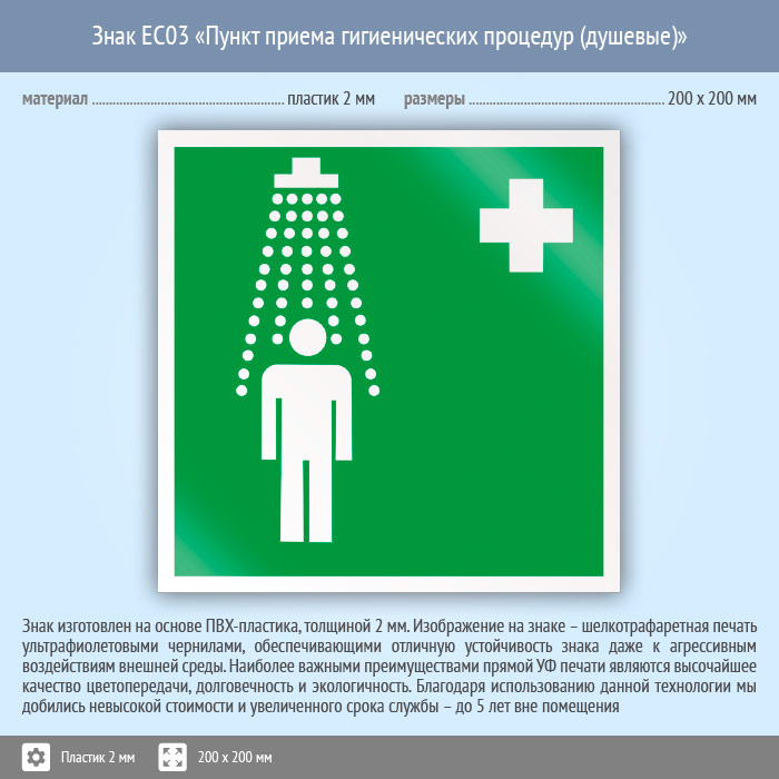 Знак EC03 «Пункт приема гигиенических процедур (душевые)» (пластик, 200х200 мм) в Хотьково купить