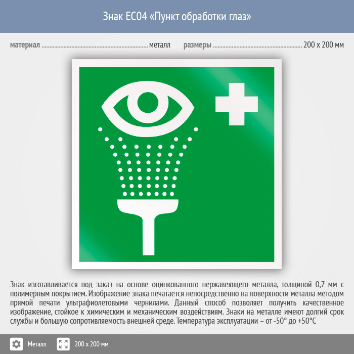 Знак EC04 «Пункт обработки глаз» (металл, 200х200 мм) в Хотьково купить