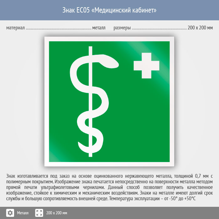 Знак EC05 «Медицинский кабинет» (металл, 200х200 мм) в Хотьково купить