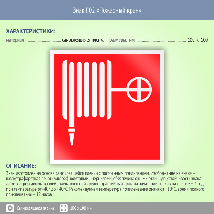 Знак F02 «Пожарный кран» (пленка, 100х100 мм) в Хотьково купить