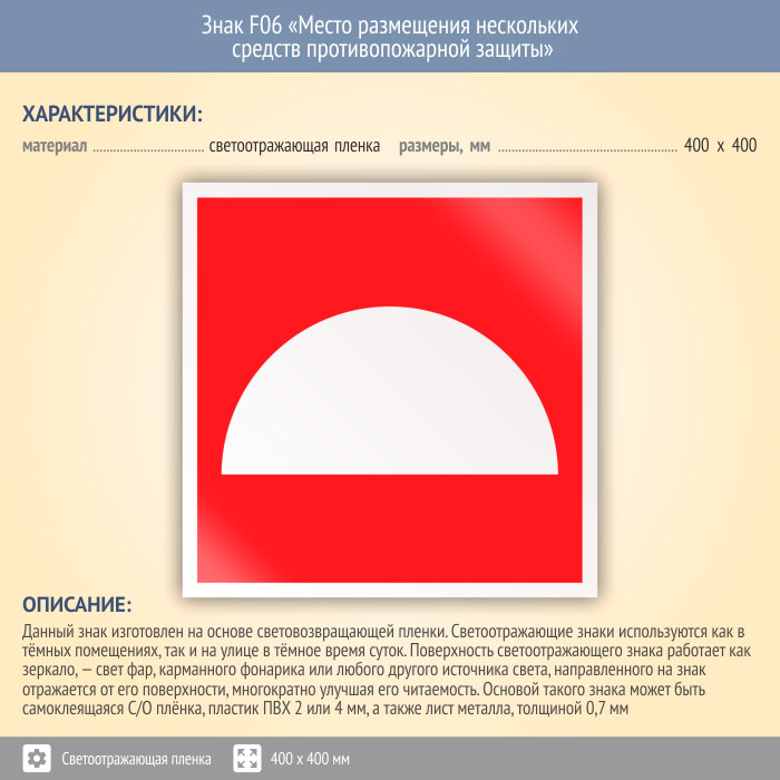 Знак F06 «Место размещения нескольких средств противопожарной защиты» (светоотражающая пленка, 400х400 мм) в Хотьково купить