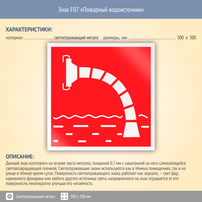 Знак F07 «Пожарный водоисточник» (светоотражающий металл, 300х300 мм) в Хотьково купить