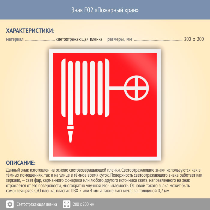 Знак F02 «Пожарный кран» (светоотражающая пленка, 200х200 мм) в Хотьково купить