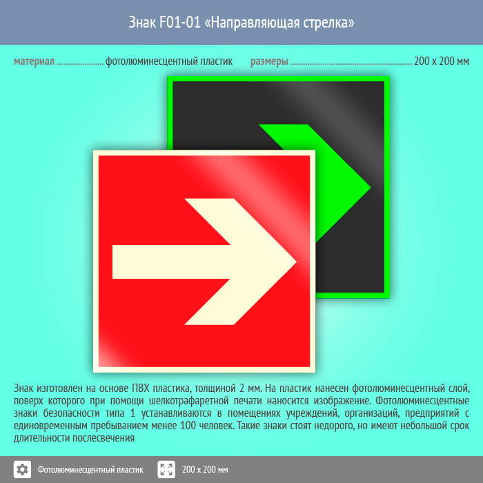 Знак F01-01 «Направляющая стрелка» (фотолюминесцентный пластик, 200х200 мм) в Хотьково купить