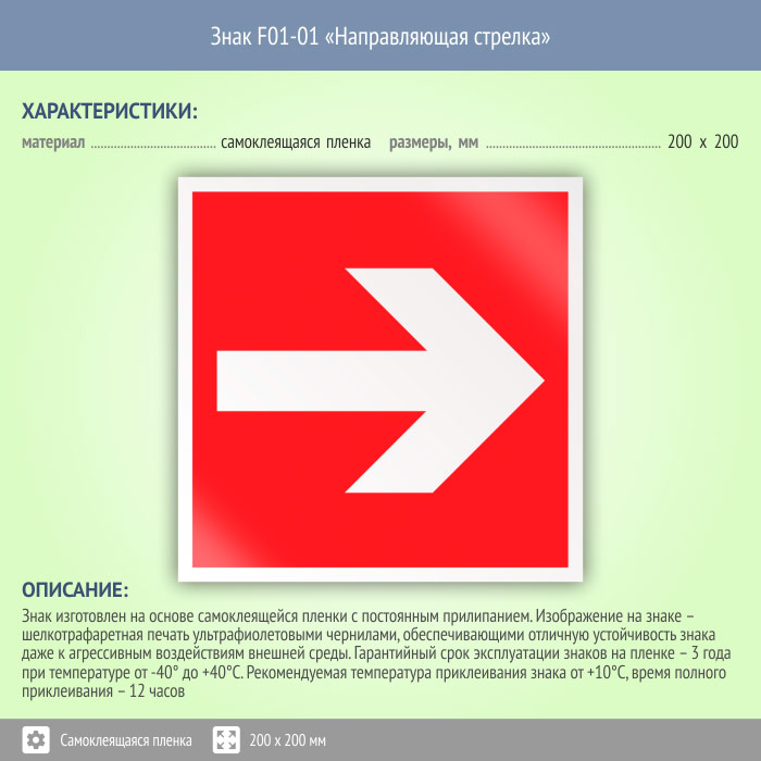 Знак F01-01 «Направляющая стрелка» (пленка, 200х200 мм) в Хотьково купить
