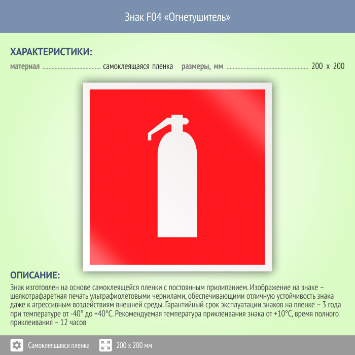 Знак F04 «Огнетушитель» (пленка, 200х200 мм) в Хотьково купить