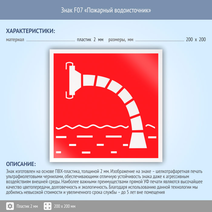 Знак F07 «Пожарный водоисточник» (пластик, 200х200 мм) в Хотьково купить