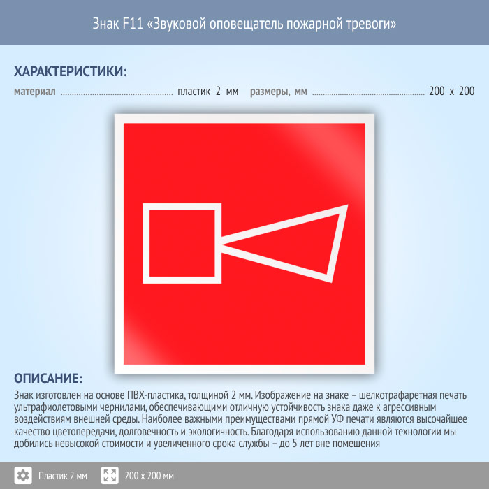 Знак F11 «Звуковой оповещатель пожарной тревоги» (пластик, 200х200 мм) в Хотьково купить