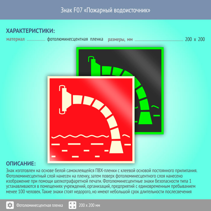 Знак F07 «Пожарный водоисточник» (фотолюминесцентная пленка, 200х200 мм) в Хотьково купить