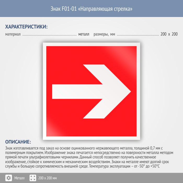 Знак F01-01 «Направляющая стрелка» (металл, 200х200 мм) в Хотьково купить