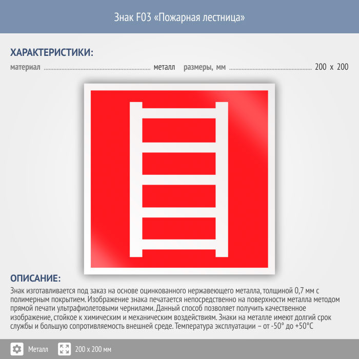 Знак F03 «Пожарная лестница» (металл, 200х200 мм) в Хотьково купить
