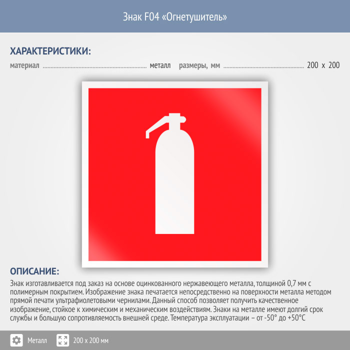 Знак F04 «Огнетушитель» (металл, 200х200 мм) в Хотьково купить