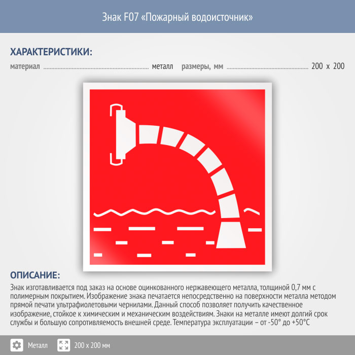 Знак F07 «Пожарный водоисточник» (металл, 200х200 мм) в Хотьково купить